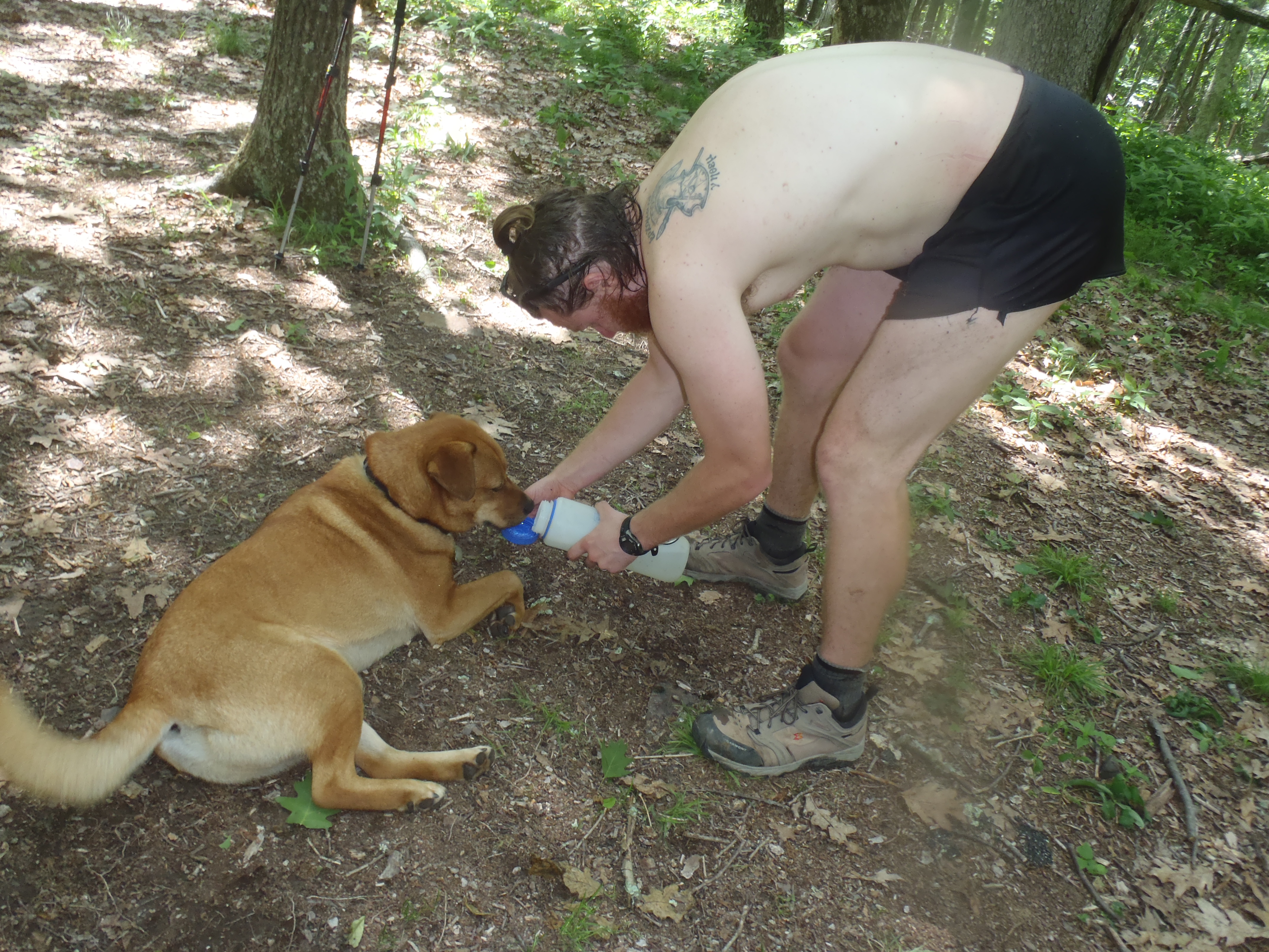 Clay, being a good parent and giving water to the trail princess.