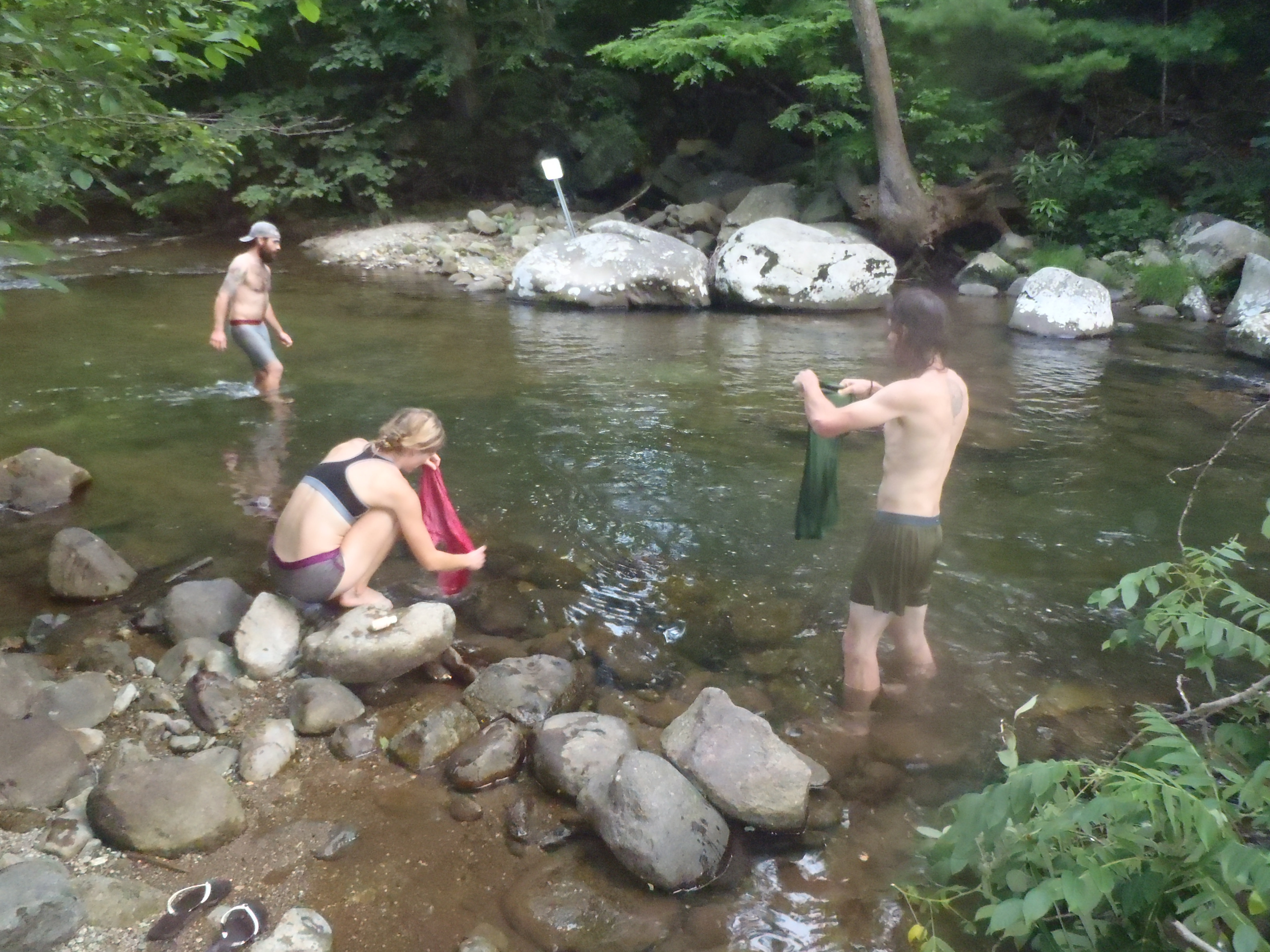 The rising summer temperatures and new shoe break-in-period gave us a convenient excuse to take a chance to stop and smell the roses; especially the ones that grow around swimming holes! We took advantage of the several opportunities to go swimming in this section during the heat of the day and even went as far as changing our hiking schedule to finish a hot sweaty day of walking at a conveniently placed creek or river. This is exactly why people hike the AT, because when else can you quit your job to go walk in the woods all summer and finish a 90 degree day with a dip in the creek and a camp store with homemade milkshakes only 1.3 miles away. We took some reprieve from the heat at higher mountain elevations too, not just at the creeks. We spent a night at our last 5,000ft peak (until New England) on aptly named Cold Mountain with a pleasantly chilly 55 degree breeze and an hour long sunset we all enjoyed while cooking and eating dinner. Camping on the last bald mountaintop until New Hampshire was a good decision because we were treated to one of the longest lasting sunsets we’ve had since leaving Alaska.