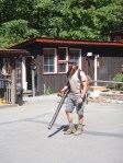 Clay cleaning up the driveway as part of his work-for-stay